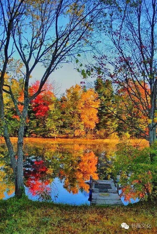 坐看秋色,凝望一池秋水,眺望南山红叶,仰望云卷云舒,山、云、树、水之影重重叠叠,纯净无尘的秋色在心中逐渐升起。