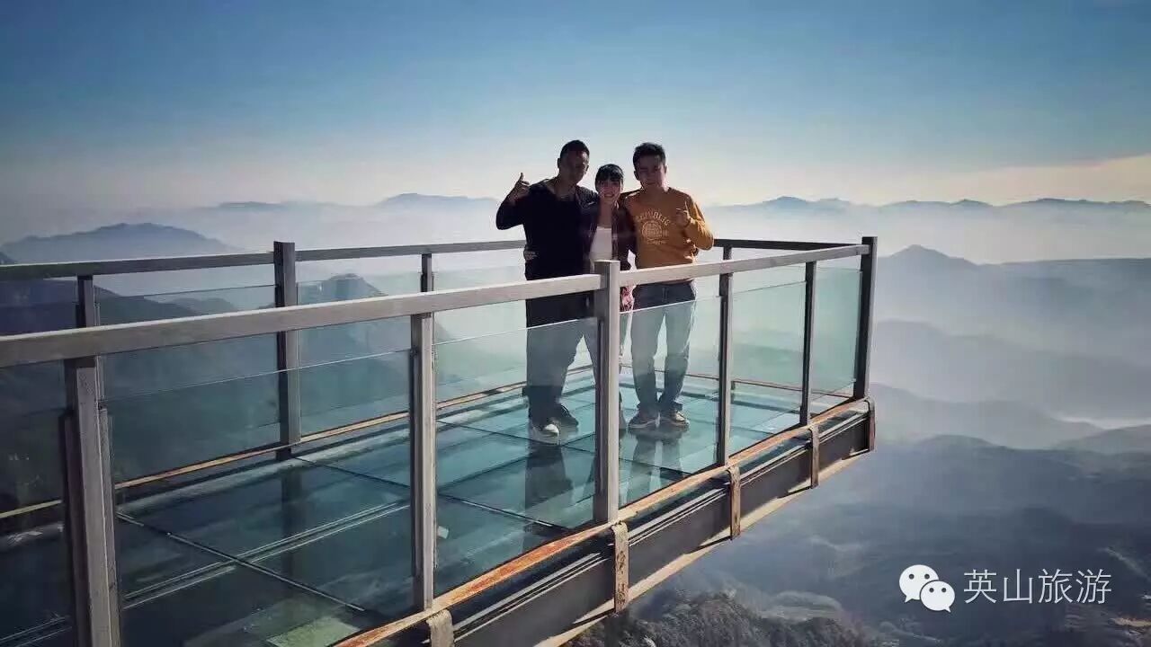 然而,看着同行的好几个人望着还剩下100多米高的顶峰,那不甘心的眼神,只好说,再向上爬一会吧,即使到不了顶峰,也到上面的观景台上好好眺望,才算心安。向上攀爬了一会儿,来到一处观景台,远处半山腰里的栈道蜿蜒曲折,拐弯处是一个巨大的玻璃平台,据说这是最早建好的悬空栈道,比罗田县天堂寨的悬空栈道还要早,却因为索道排队检测的原因一直没有开放。