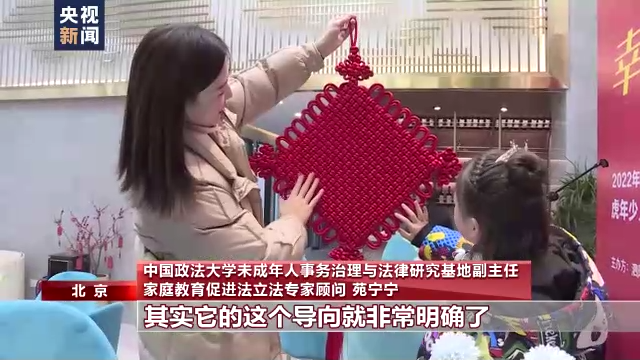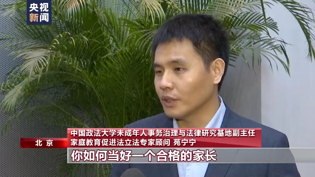 中国政法大学未成年人事务治理与法律研究基地副主任、家庭教育促进法立法顾问苑宁宁:第一个关键词就是指引,通过法律的方式告诉父母,你如何当好一个合格的家长,引导着你去按照科学的方法,科学的理念去教育孩子。第二个关键词是赋能,就是的确父母也是需要一个不断学习的过程,遇到困难和问题的时候,可以去向公共体系获取相应的帮助,也学习到相关的知识,然后来提升自己的能力。