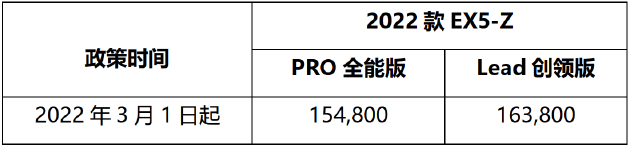 同样是在3月1日,威马汽车宣布,自3月1日起,威马部分车型的排产计划和车型售价将进行逐步调整。其中,2022款EX5-Z PRO全能版售价调整为15.48万元,Lead创领版售价调整为16.38万元,比原售价分别上浮3000元和4000元。