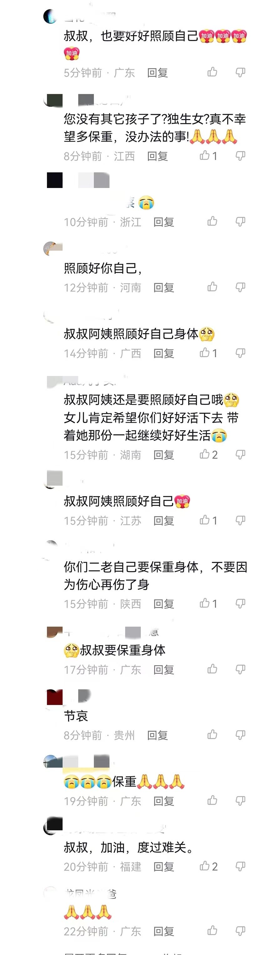 女孩父亲在社交平台留言下的网友回复