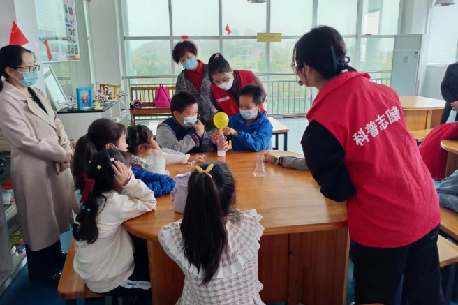 10月29日,黄州区东湖街道虹桥社区组织辖区小朋友开展科技兴国展未来科普小实验活动。