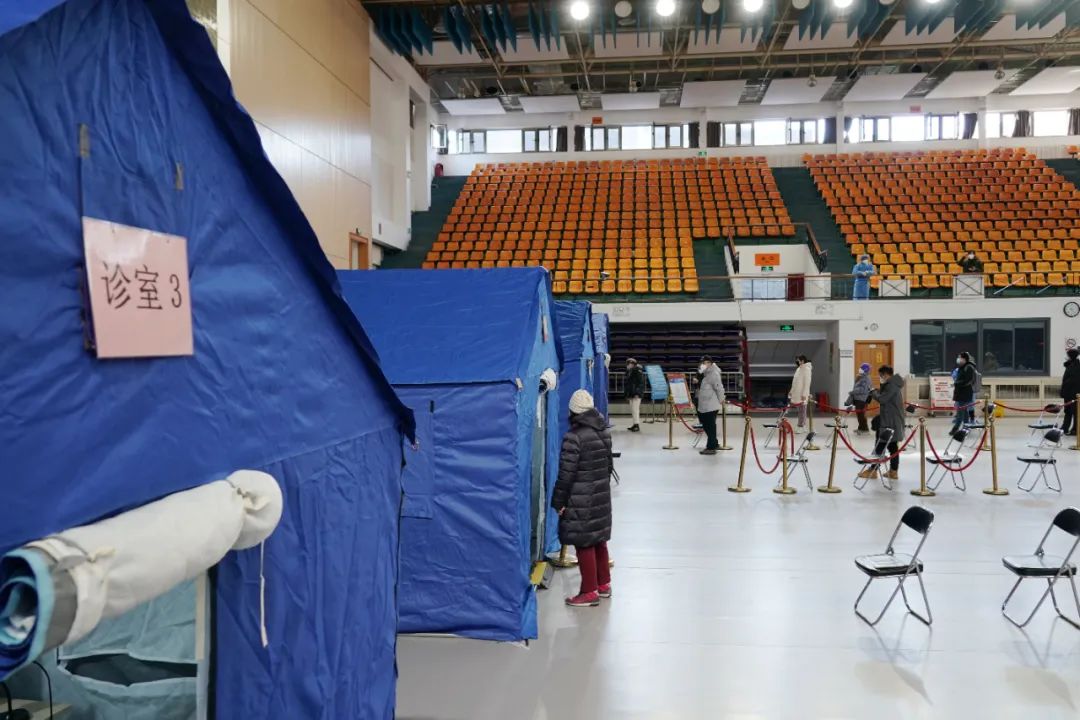 北京市西城区,广安体育馆。2022年12月14日,这个由体育馆改造而成的简易发热门诊正式启用,设有临时药房、药库,配有解热镇痛药品。