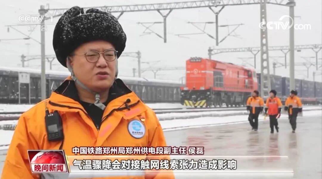 中国铁路郑州局郑州供电段副主任侯磊表示:“气温骤降会对接触网线索张力造成影响,我们加大重点设备的检查力度,确保线索驰度正常,保证供电设备安全。”