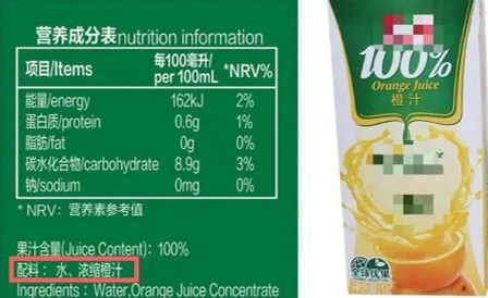 所以如果想选择的是真正的纯果汁,学会看配料表会非常重要。
