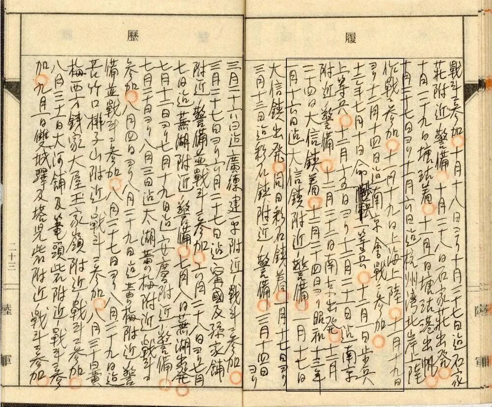 1937年11月19日在上海登陆;11月19日至12月14日参加侵占南京的战斗;12月15日至21日,在南京附近警备……这本军人手牒详细记载了一名侵华日军从1937年1月10日应征入伍到1941年1月9日退伍的履历,持有者是侵华日军第六师团步兵第四十五联队步兵炮队伍长福岛正久。在此期间,他先后参加过侵占保定、石家庄、上海、南京、广德、芜湖、武汉、宜昌等地的作战。