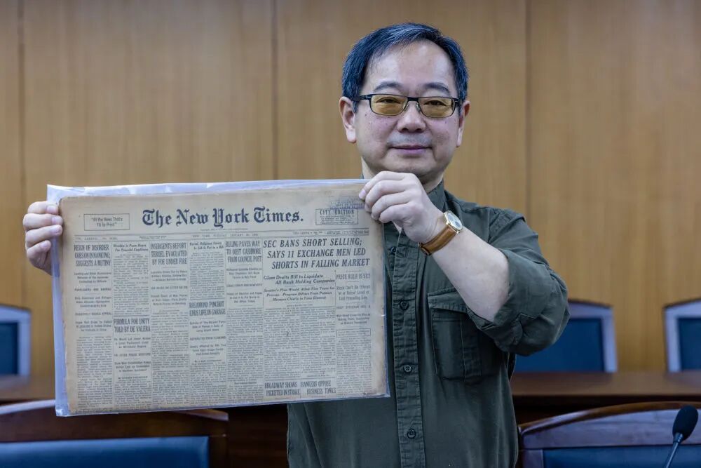 鲁照宁在展示本次捐赠的文物史料。侵华日军南京大屠杀遇难同胞纪念馆供图