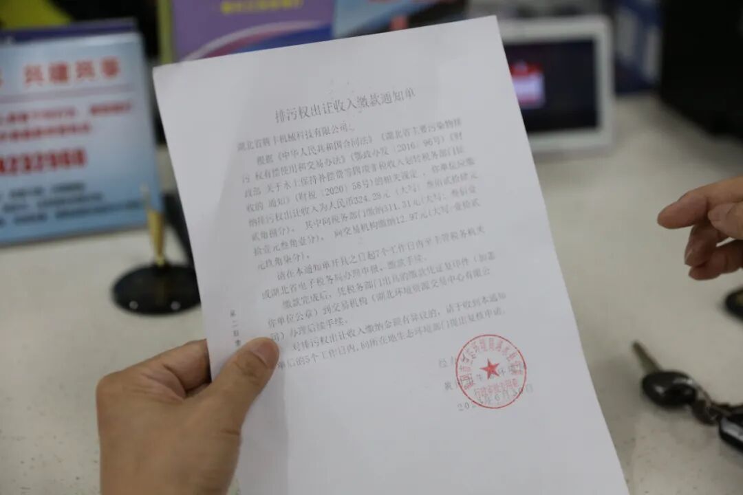 6月30日上午12时许,在浠水市民之家环保窗口,湖北腾丰机械科技有限公司负责人翟正国从经办人员手中接过污染物排污权交易鉴定书时感激地说。湖北腾丰机械科技有限公司是浠水县招商引资企业,于2014年落户在浠水县经济开发区洪山工业园区,主要生产紧固件机械。因企业发展厂区进行二期扩建,需要办理排污权证。过去办理排污权证书,需要到省、市、县各级环保及相关部门办理手续,花费一个多月时间才能办完各种手续。