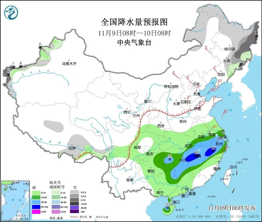 昨天(8日),黑龙江ã€å‰æž—ã€è¾½å®ç‰åœ°å‡ºçŽ°é›¨é›ªå¤©æ°”ï¼Œæµ™æ±Ÿã€ç¦å»ºã€æ±Ÿè¥¿ã€æ¹–å—ç‰åœ°å‡ºçްé™é›¨ã€‚今天(9日),东北é™é›ªå‡å°‘,江å—ç‰åœ°å¤šé™é›¨å¤©æ°”,部分地区有大到暴雨。
