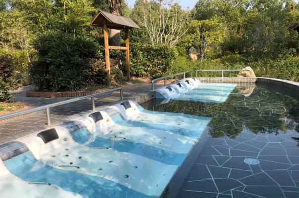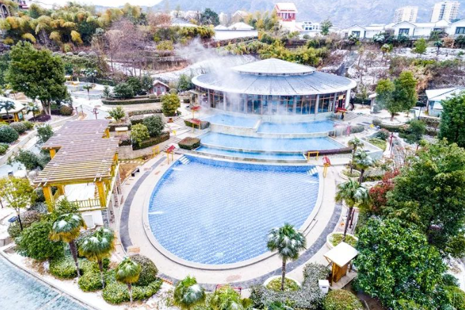 依山而建,被山水拥抱在怀里,像一处隐密的休闲之地。3口温泉眼布局成园,大小汤池多达近百种。丛林七星区、网红无边泳池、中药养生区……多种类型的汤池任你轮番体验,畅爽到底!