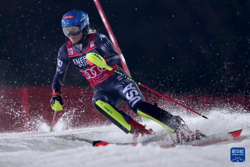 这是2023年1月4日,美国选手米凯拉·希弗林在萨格勒布高山滑雪世界杯女子回转比赛中。 新华社发(Pixsell图片社/马蒂亚·哈布雅克摄)