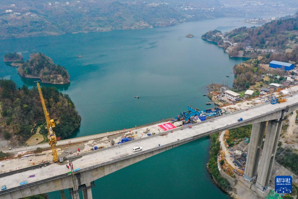 这是12月26日拍摄的建设中的渝湘复线高速彭酉路鱼梁溪特大桥施工作业现场(无人机照片)。