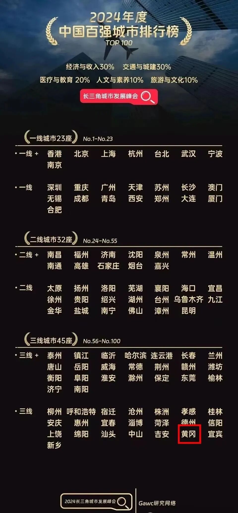 2024年中国百强城市排行榜发布,黄冈以独特的魅力和实力,跻身三线城市之列。
