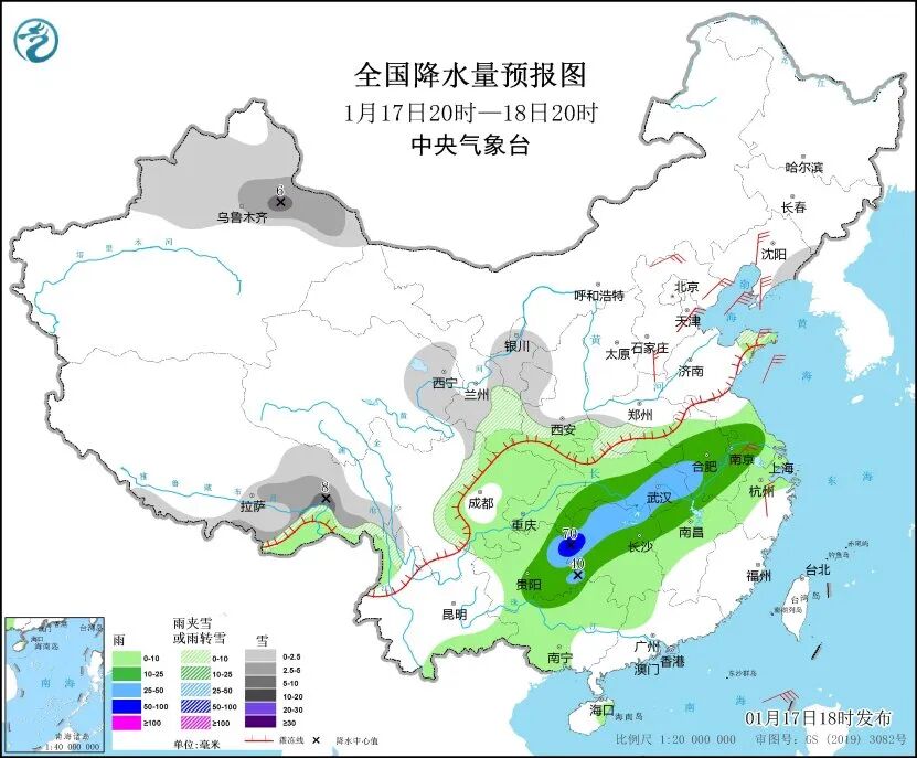 中央气象台预计,17日20时至18日20时,新疆北部、青海东部、甘肃南部、宁夏、陕西南部、西藏东部等地部分地区有小到中雪或雨夹雪,其中,新疆沿天山地区、西藏东南部局地有大雪。