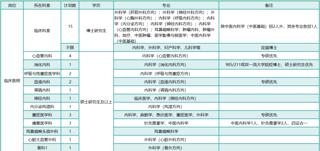 3.硕士研究生原则上须为专硕(中医系列须取得规培证),年龄在35周岁及以下;