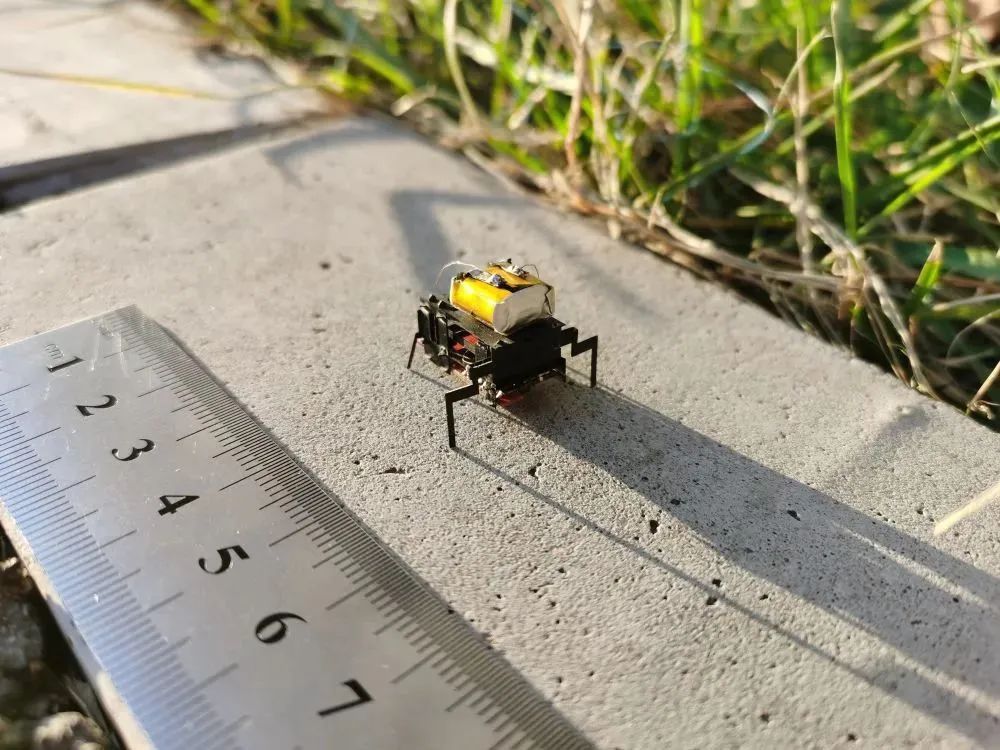 置身一堆小石块儿间,这款四足机器“昆虫”行动矫健、穿梭自如,仿若甲壳虫。文章共同通讯作者、北航能源与动力工程学院教授闫晓军介绍,该机器“昆虫”身长2厘米、宽1厘米、重1.76克,垂直投影面积仅两个指甲盖大小,具有快速机动、高载重、无线可控等特性。