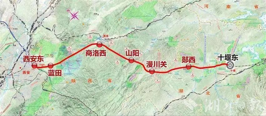 西十高铁西起陕西省西安市,向东南穿越秦岭山脉,经商洛,终到湖北十堰市,是福(州)银(川)高铁武汉至西安段的重要组成部分,预计将于2026年竣工通车。新建项目正线全长255.76公里,其中湖北省境内86.36公里,陕西省境内169.4公里,设计时速350公里。项目建成通车后,湖北西北走向的高铁运输能力将大幅提升,武汉都市圈至关中城市群的旅行时间将缩短至2-3小时,武汉开往西安、西宁等地的高铁有望大量增加。
