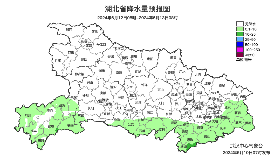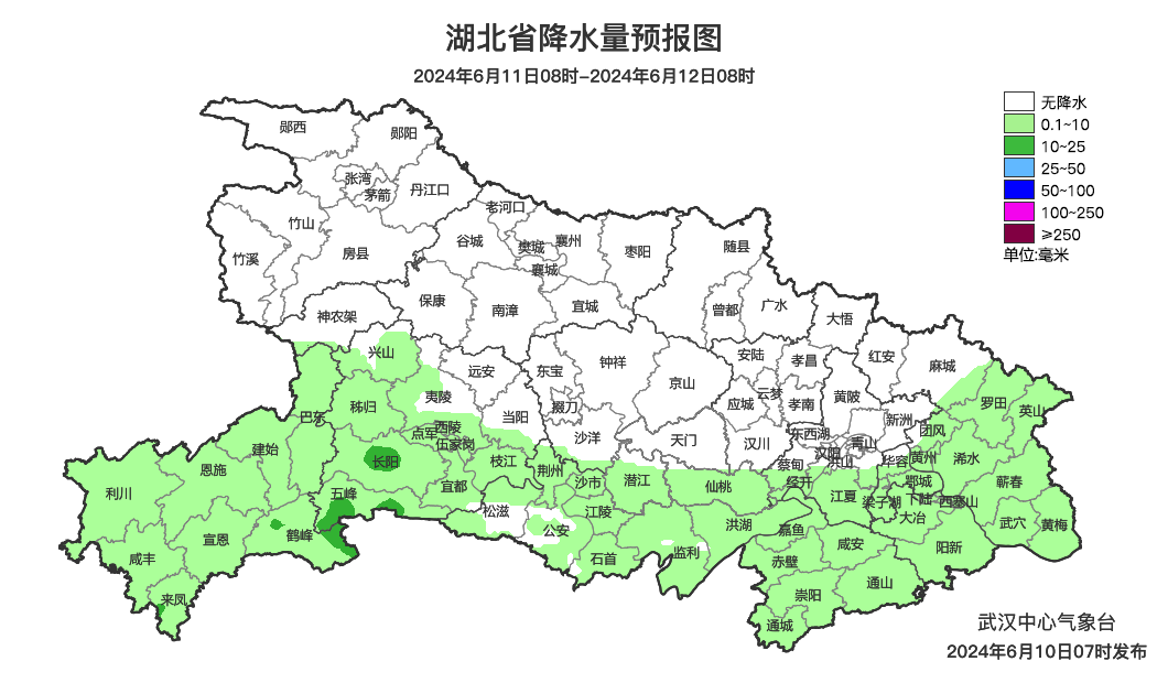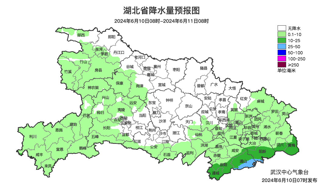 预报来源:武汉中心气象台2024年6月10日08时预报