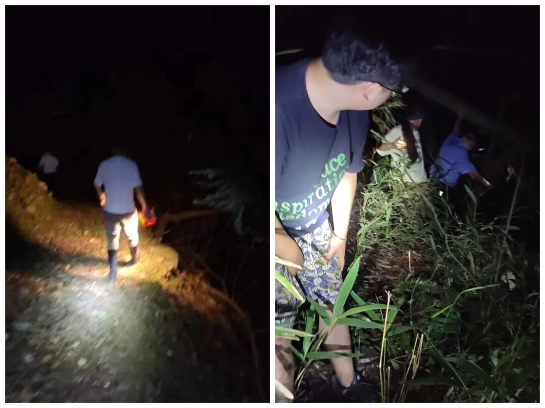 最后,民辅警原路返回向当地人寻求帮助,最终在村里牧羊人的带领下,民辅警们继续深一脚浅一脚地进山搜救。因山高林密,天黑又下着雨,给救援增加了不少难度,但是他们一刻也不敢松懈,即使在密林中滑倒多次,仍忍痛继续摸黑前进救援,经过近 4 小时的搜救,终于发现了被困的游客们,确认3人身体都无大碍后,便一起下山返回。