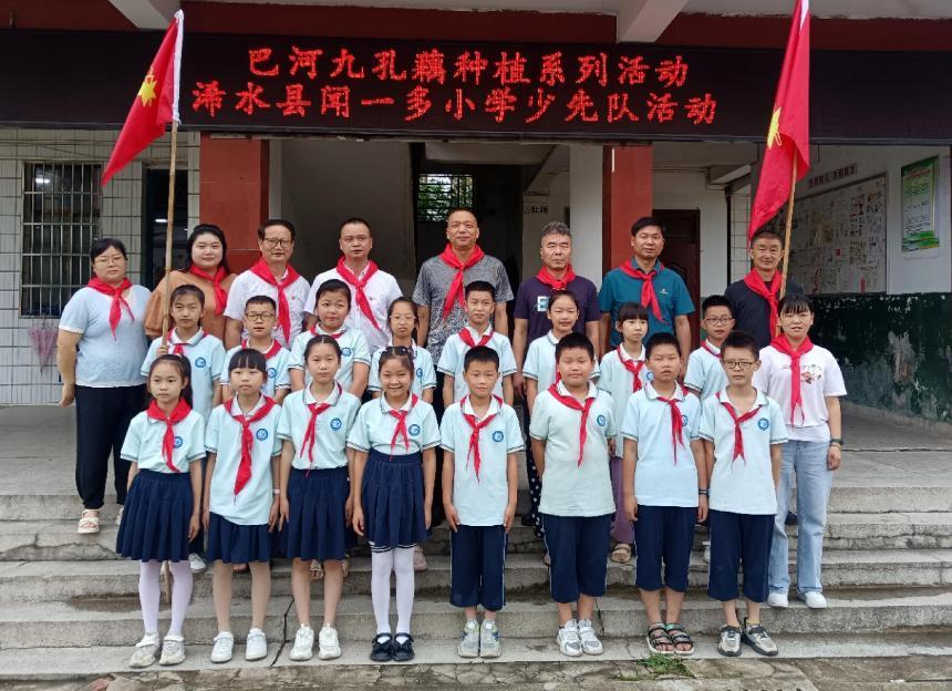 九孔藕种植时需要肥沃的土壤和适宜的环境。施肥是种植九孔藕的重要环节,它能为藕的生长提供足够的养分;而除草则是为了防止杂草与藕争夺养分,确保藕的健康生长。根据九孔藕的生长周期,6月25日,浠水县闻一多小学开展了为莲藕除草、施肥的劳动实践活动,同学们在少先队辅导员的带领下,兴致勃勃地来到闻一多小学西河校区莲藕种植基地。