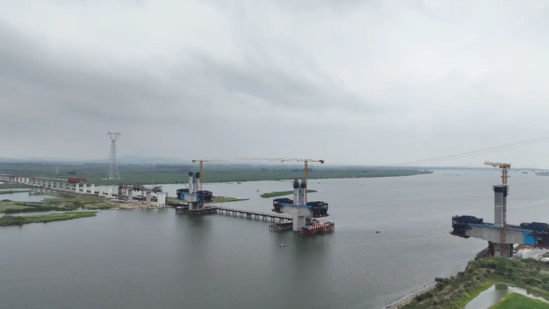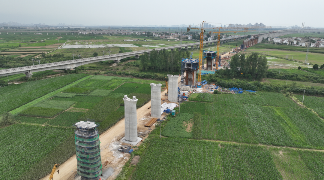 襄阳东站双线特大桥。据现场桩基施工技术人员介绍,施工过程中,尤其在今年春节之后,项目部加大投入各类大型旋挖钻机,采用多台全套管全回转钻机,引进国内最大的XG800型旋挖钻机及首次在旋挖钻机中采用牙轮水钻工艺,同时结合复杂地质采取注浆、钢护筒跟进等施工工艺,成功克服了岩石硬度大、流沙层、串珠型溶洞等多类地层带来的不利影响,大桥预计于9月底实现贯通。