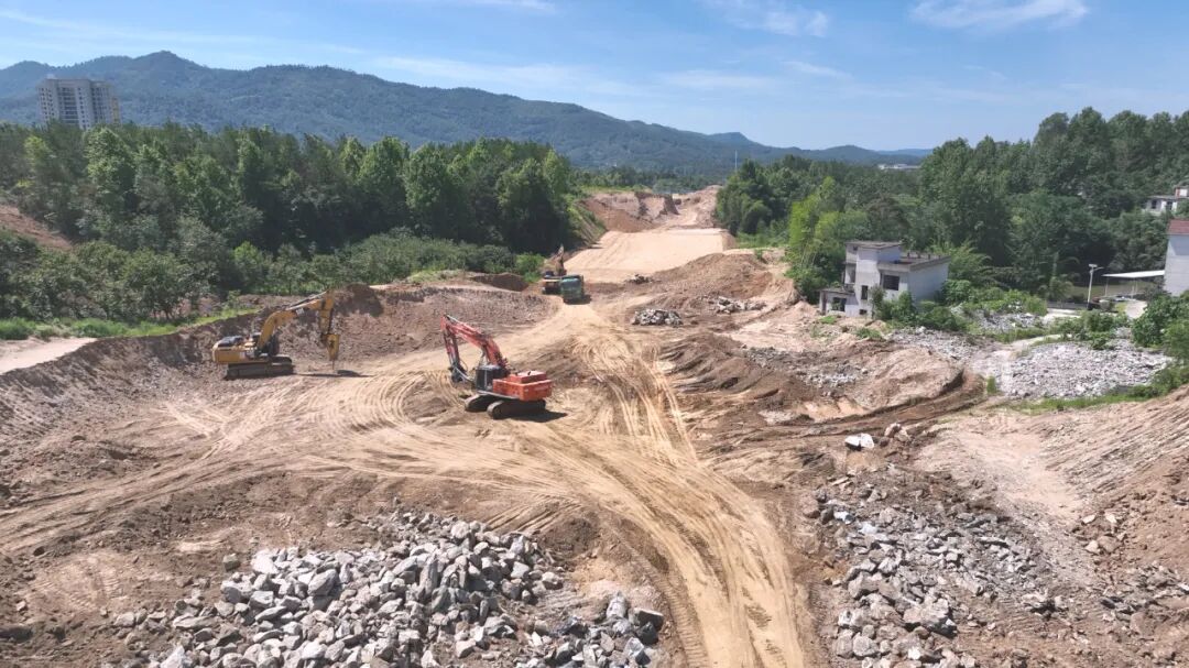 在凤城大道与栗乡大道连接路施工现场,因为前段时间的降雨,工地一片泥泞,路基施工严重受阻。为抢抓晴好天气,加快施工进度,现在分为三个作业面交叉施工,确保工程进度不受影响。同时,项目部准备了充足的防暑降温药品、盐汽水等,加强高温天气劳动保护,防止因高温天气引发的工人中暑和其他生产安全事故。