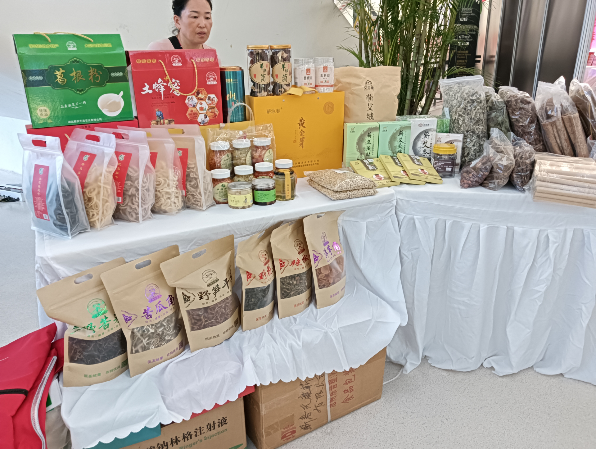 主场活动启动式上,省科协、省生态环境厅,组织蕲春县3家科技小院,生态农业、绿色经济示范基地及张塝镇绿色环保经济创业园、时珍故里系列生态绿色环保型名特优农产品、狮子镇健康产业园——蕲春县中药材协会蕲艾系列产品等全省10家科技小院相关系列名优土特产品在主会场参加展览,吸引与会领导注足观赏,并获得好评。
