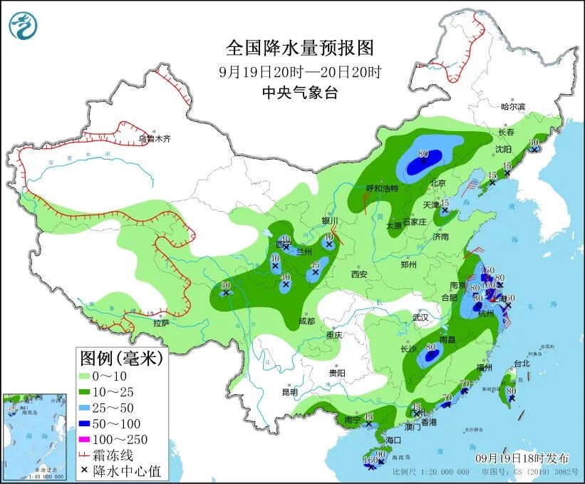 中央气象台19日18时继续发布暴雨黄色预警,预计19日20时至20日20时,上海、浙江北部和东部、江苏中南部、安徽东南部、江西中南部、广东东南部沿海、海南岛大部以及内蒙古中部、河北北部、青海东部、甘肃南部等地部分地区有大到暴雨,其中,江苏东南部、浙江东北部、海南岛南部等地部分地区有大暴雨。