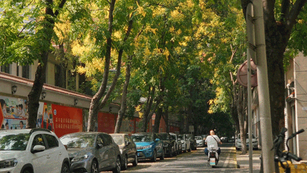 ○栾树就是那个会“滴油”的行道树,夏天开出金色的花,秋天结出红色的果。(拍摄于武昌区团结大道)