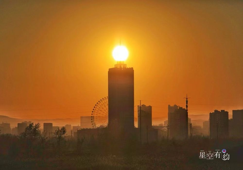 星空摄影师萧易寒9月22日在陕西西安含光门拍摄的旭日“悬日”。(星联CSVA供图)