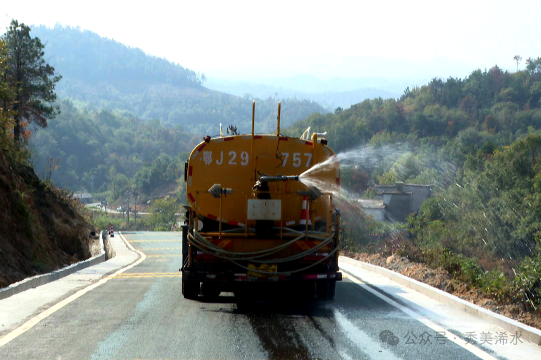 飞月路是浠水县的一条村道,起于清泉镇峰山村,止于月山村。目前,路面主体工程全面完成,洒水车正在进行洒水作业。