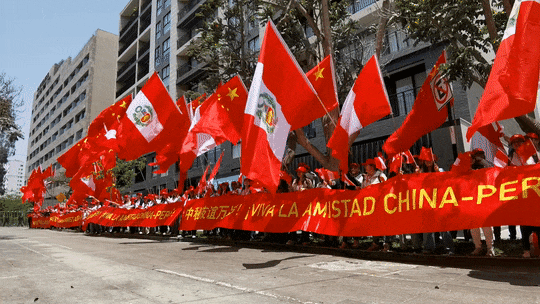 当地时间14日下午,中国国家主席习近平乘坐专机抵达秘鲁首都利马,开始对秘鲁进行国事访问并出席亚太经合组织第三十一次领导人非正式会议。 专机抵达后,礼兵分列红毯两侧,身着特色服饰的秘鲁学生向习近平主席献花。 来源:新华社