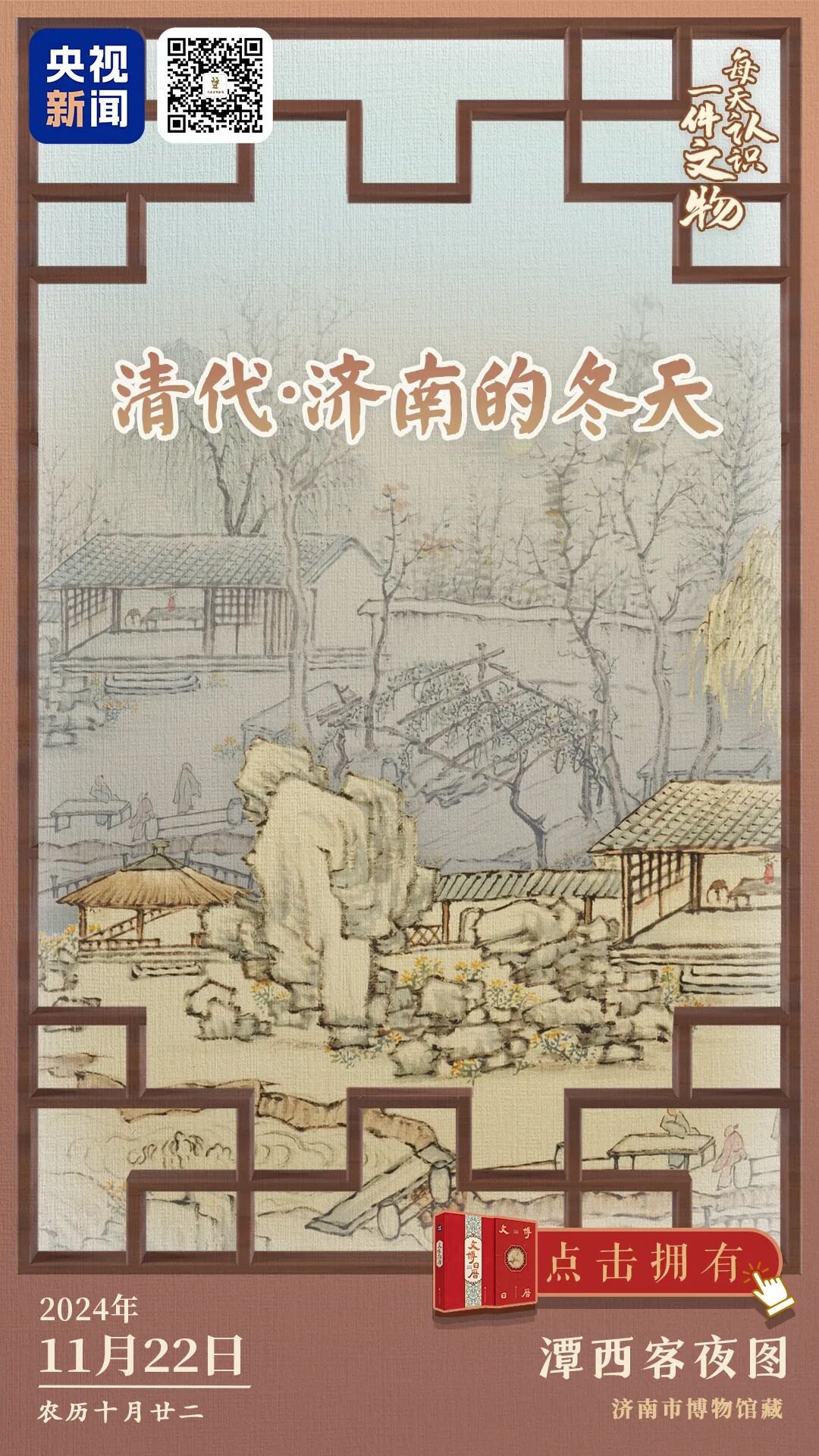 央视新闻联合全国博物馆推出文博科普产品《文博日历》,每天带你认识一件文物。乾隆五十六年,著名学者桂馥在济南五龙潭西侧修建了一所“潭西精舍”,在施工期间无意挖出一个泉眼并将其命名为“七十三泉”。该精舍建成后一度成为名人学士聚会交流的场所,后被清代书画家郭敏磐以其诗境创作了《潭西客夜图》。