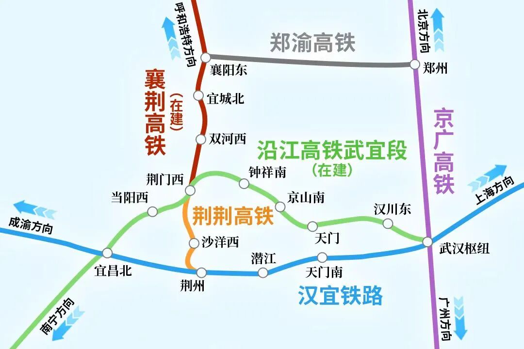 荆荆高铁在荆门西站与在建的沿江高铁武汉至宜昌段、襄阳至荆门高铁连接,在荆州站接入汉口至宜昌铁路,未来通过襄阳至荆门高铁可连通郑州至重庆高铁、武汉至西安高铁,区域路网地位十分重要。该项目开通运营后,荆门市接入全国高铁网,湖北中部地区铁路网布局进一步完善,将极大便利沿线人民群众出行,更好辐射带动周边地区经济发展,对促进长江中游城市群高质量发展,推动中部地区崛起具有积极意义。