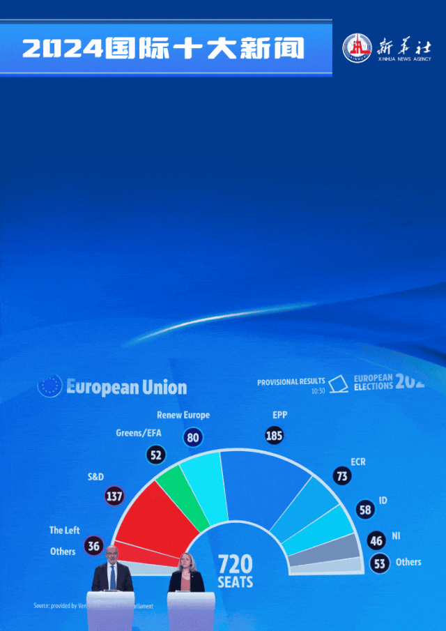 6月,欧洲议会选举,右翼和极右翼政党席位增加,极右翼势力借民众对经济、民生、移民等问题的不满进一步崛起。在内外压力下,欧洲多国政局出现变动:法国年内三换总理;英国保守党在议会选举中大败,工党时隔14年再次执政;德国执政联盟瓦解后,总理朔尔茨未通过联邦议院信任投票。