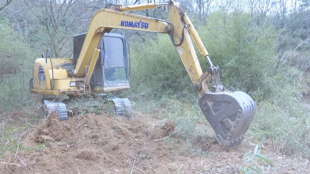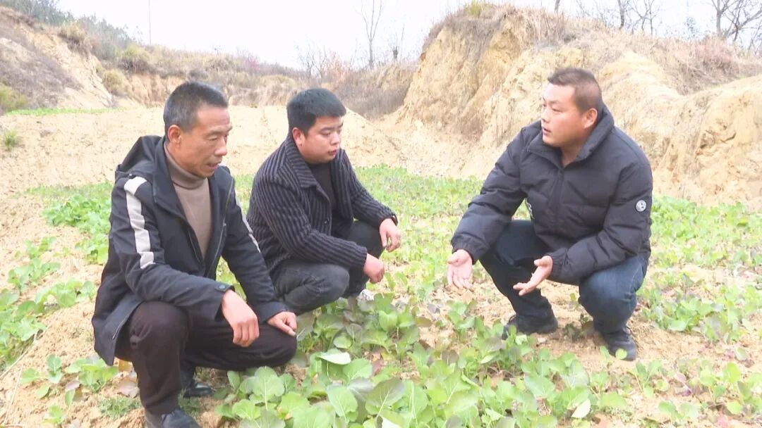 在三里畈镇江家边村的山林地里,镇村干部现场查看山地翻耕情况,指导村民挖地松土,平整地块,全面恢复土壤地力。