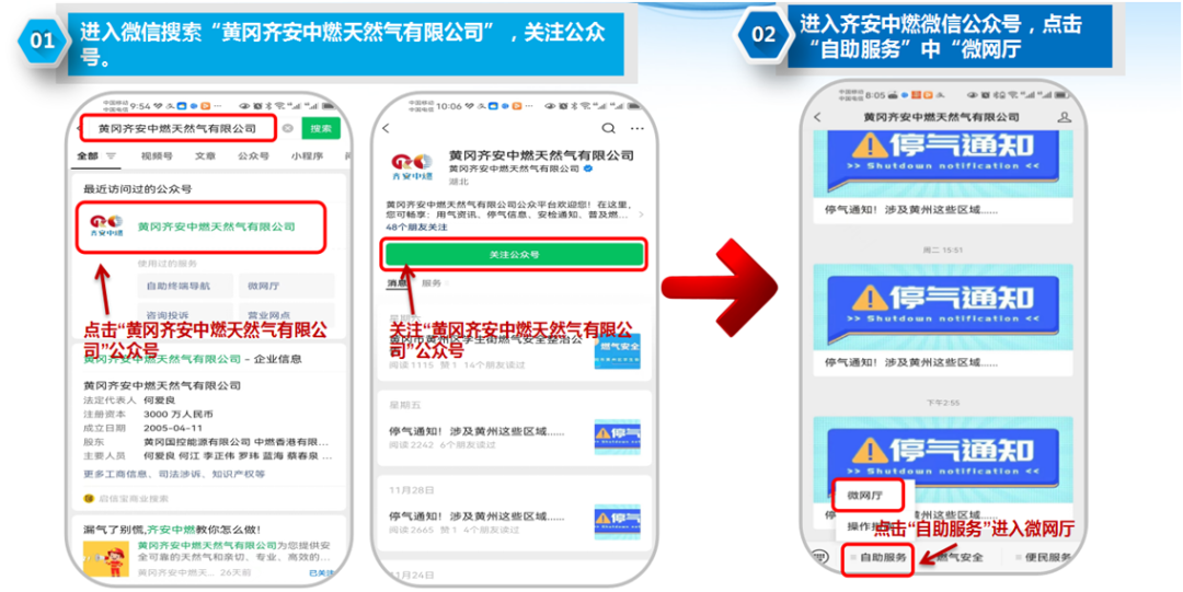 方式一:齐安中燃微信公众号→自助服务→微网厅→充值交费→绑定用户号(只需绑定1次)→再次进入微网厅→充值交费→确定用户信息后→输入交费金额。