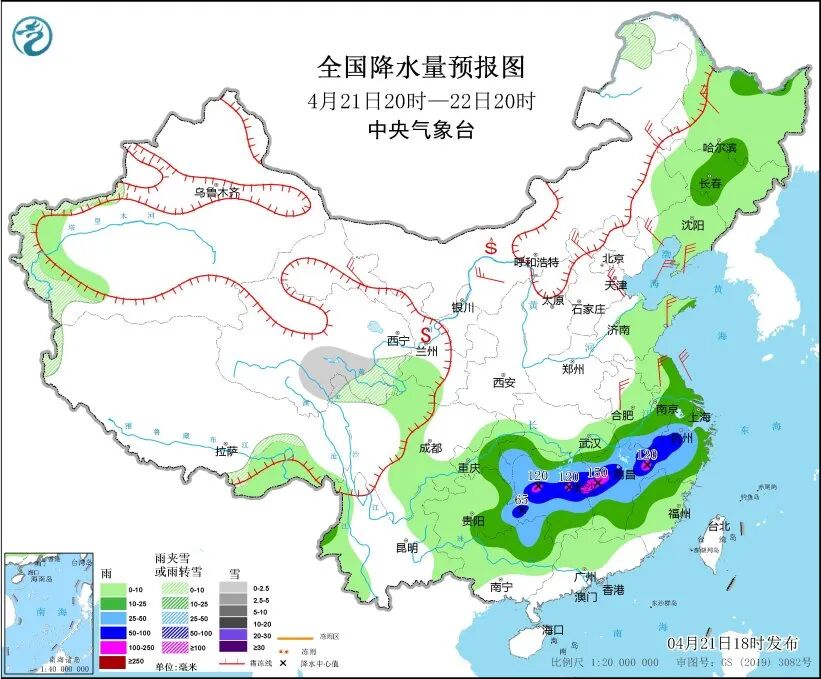 中央气象台21日18时继续发布暴雨蓝色预警、强对流天气蓝色预警:预计21日20时至22日20时,湖南、江西中北部、安徽南部、浙江中西部、福建西北部以及重庆东南部、贵州东部等地有大到暴雨,其中,湖南中部、江西北部等地部分地区有大暴雨。上述部分地区伴有短时强降水,局地有雷暴大风或冰雹等强对流天气。