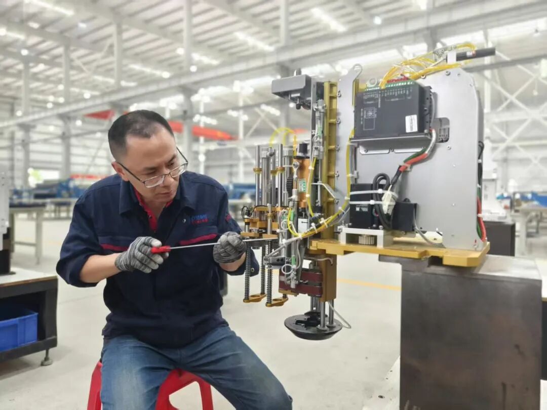 在天铭智能制造产业园1号厂房,工人们抓紧调试一台装配完成的TIMING五代机,调试完成后,这套装备将跨越重洋,送到欧洲客户手中。