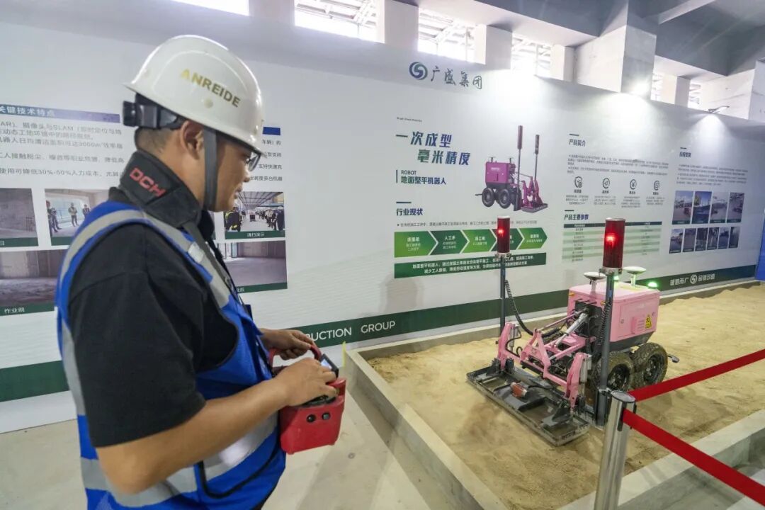 进入正在施工的现场,不见堆积成山的建筑材料,也不见工人搬砖头绑钢筋扛水泥,只有智能机器人穿梭其间。物料运输机器人有序装卸建筑物资,地砖铺贴机器人精准抹水泥贴瓷砖,腻子涂敷机器人包揽抹腻子、刮腻子、喷乳胶漆……它们各司其职,让专业作业工人数量减少50%,施工质量却提升到“毫米级”标准。