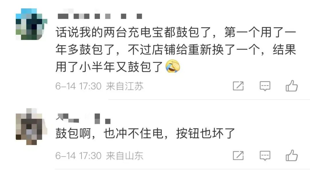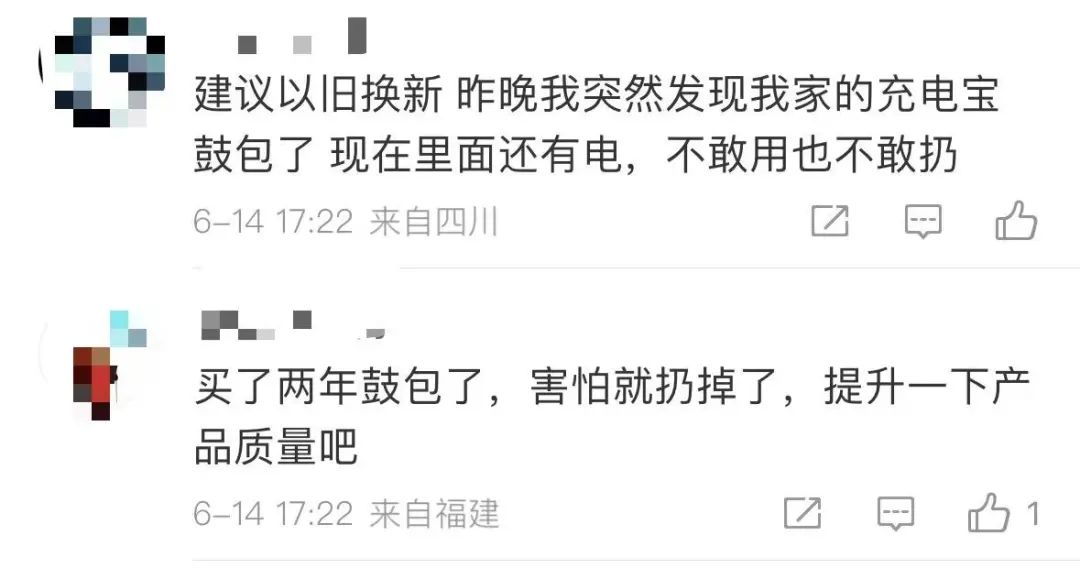 但也有不少网友称,该品牌充电宝质量参差不齐,购买时间不长但已经出现了鼓包的情况,“建议以旧换新”。