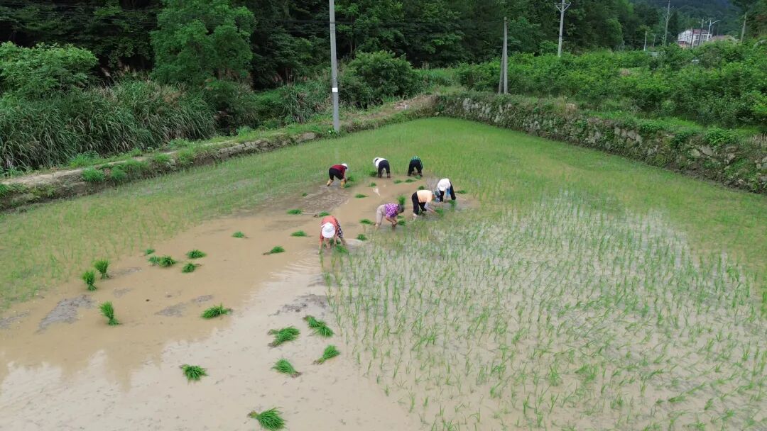 6月18日清晨,薄雾轻笼黄梅县紫云山下的百亩水田,人声鼎沸,一派繁忙。紫云山农业合作社近五十名社员躬身劳作,运苗、分秧、插秧,动作娴熟流畅。一场为期3天的集中插秧活动在此展开,目标是为150余亩高山原生态水稻披上新绿,为全年丰收夯实基础。