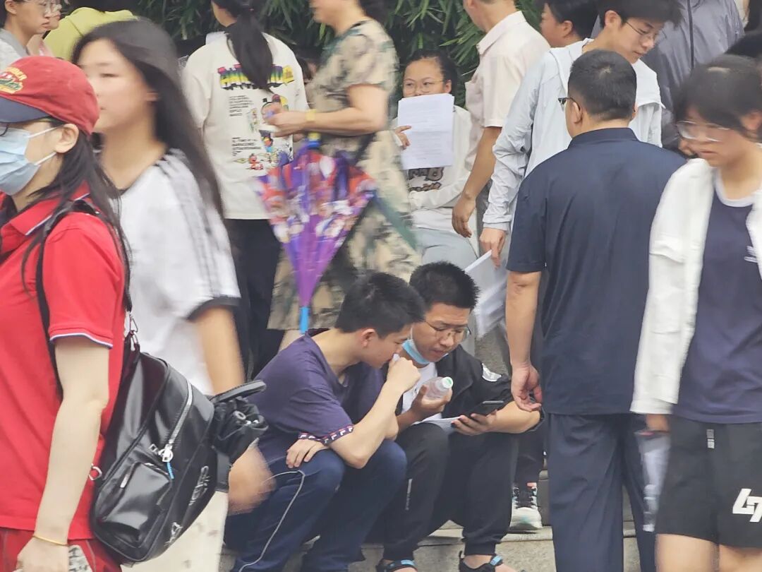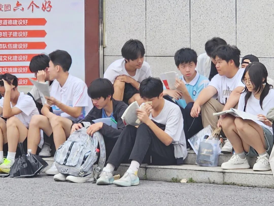 考生们有的围坐在一起