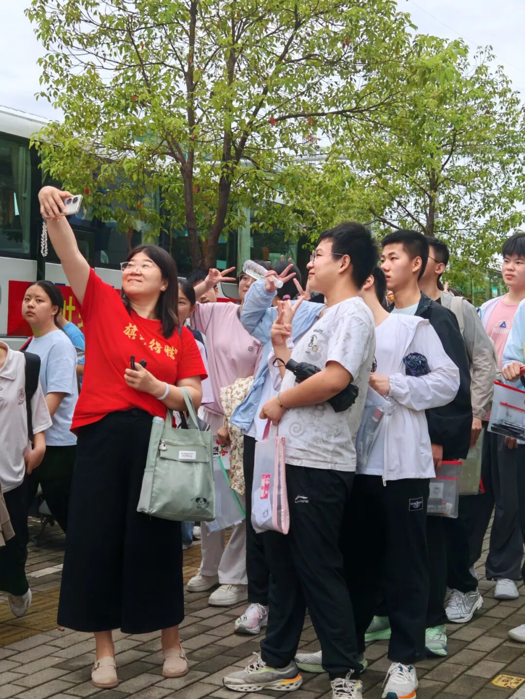 师生一起比“耶”合影