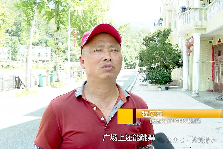 绿杨乡狮子岭村6组村民 程又喜:程书记手机24小时开机,谁家有事他随叫随到。以前村里破破烂烂,路都不好走。现在路宽了,灯亮了,广场上还能跳舞,都是他带着大伙儿一锹一镐干出来的。