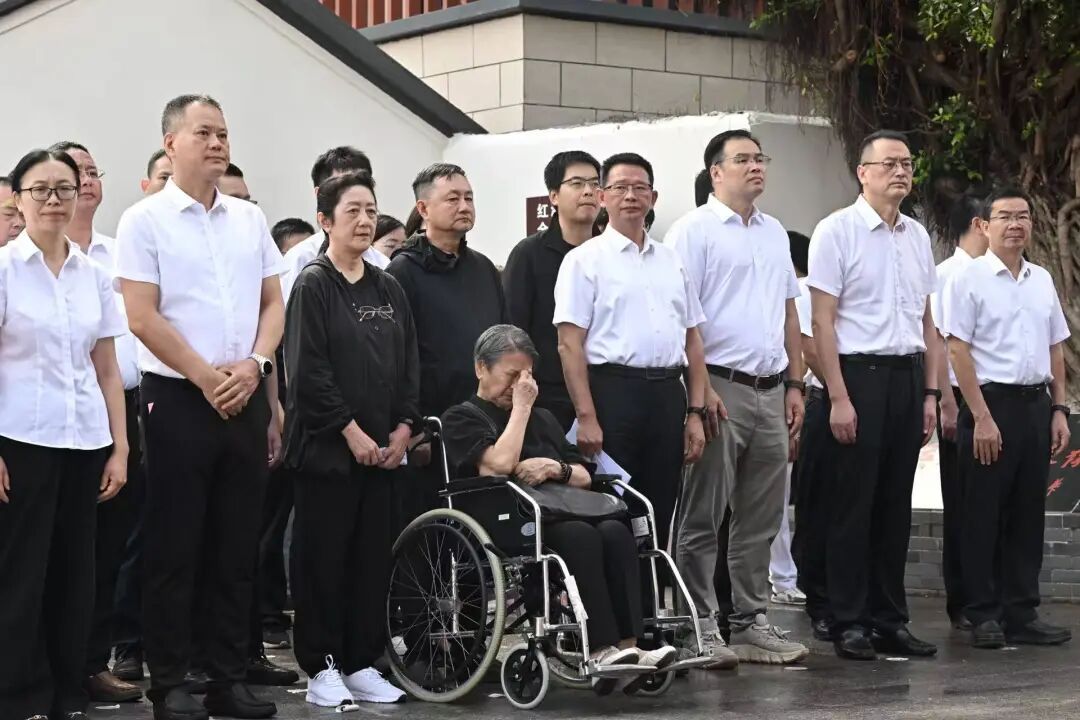 9时,人们在黄旭华院士少年时代求学成长的红楼前举行了追思仪式。现场,黄旭华院士的遗像摆放在红楼大门前,黄旭华院士家人和生前同事、好友以及家乡干部群众、师生代表一起深情回顾了他的一生。随后,大家一起进入红楼参观纪念黄旭华院士生平事迹展。
