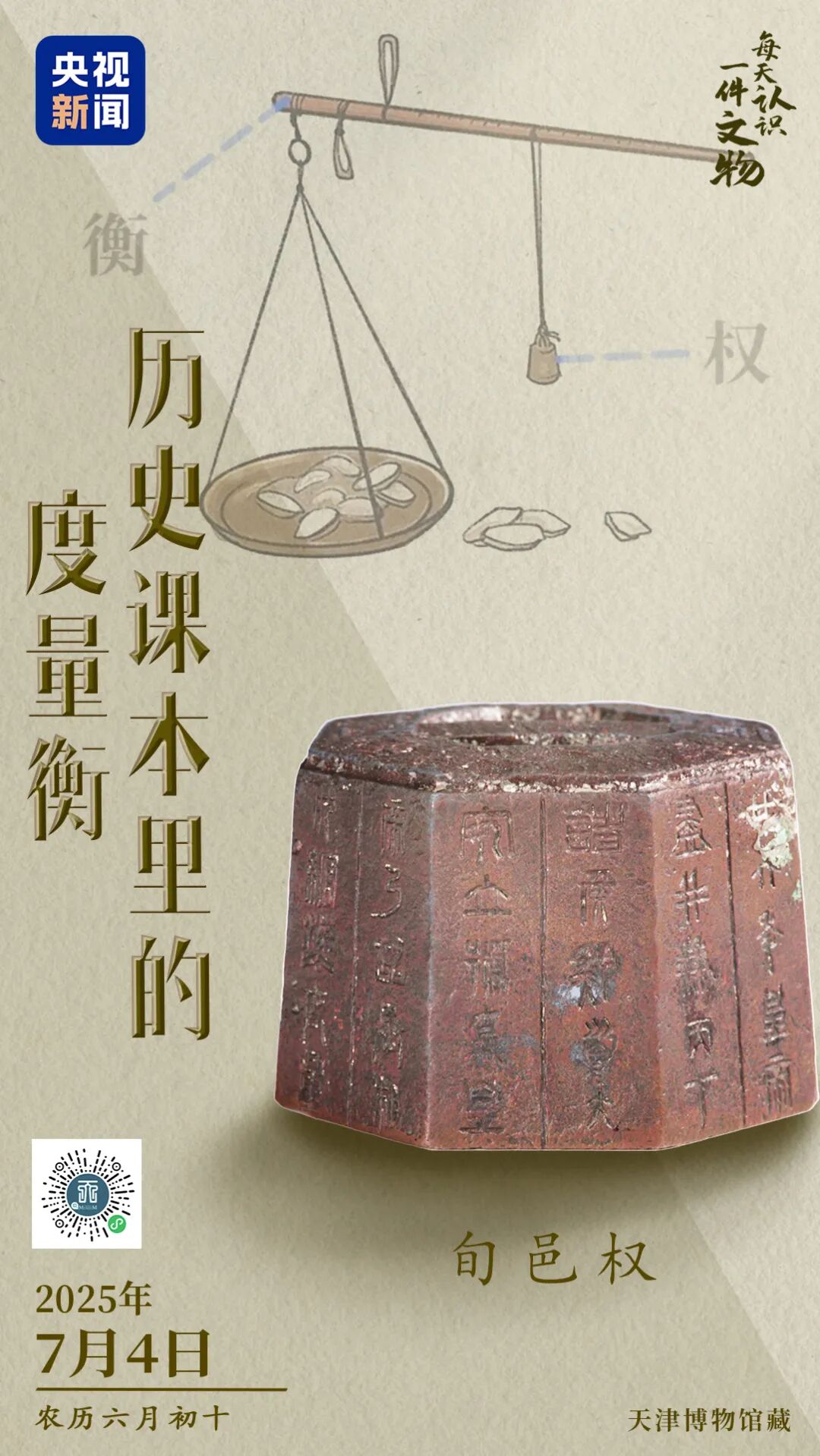 央视新闻联合全国博物馆推出文博科普产品《文博日历》,每天带你认识一件文物。旬邑权,是秦始皇统一全国衡制由政府颁发的标准衡器,相当于现代的秤砣。正看截面呈梯形,中空,器顶口有一长方形横梁,横梁左右两侧刻有篆书“旬邑”。这件旬邑权,不仅是秦朝法律和制度的见证,也是研究秦朝度量衡和文字的重要实物资料。识别图中小程序查看详情↓