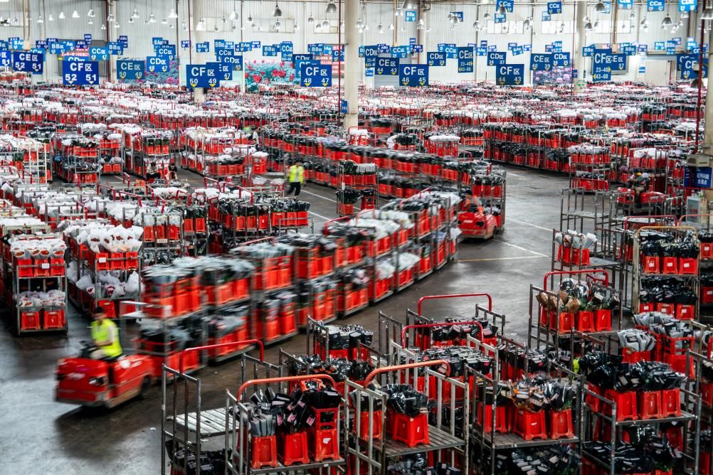 玫瑰、百合、洋桔梗等40多个品类、1500多种鲜切花的价格、评级信息在电子大屏上实时快速滚动。来自全国各地的采购商紧盯屏幕,不时按下抢拍键。拍卖结束后,鲜花马上进入打包环节,连夜发货。