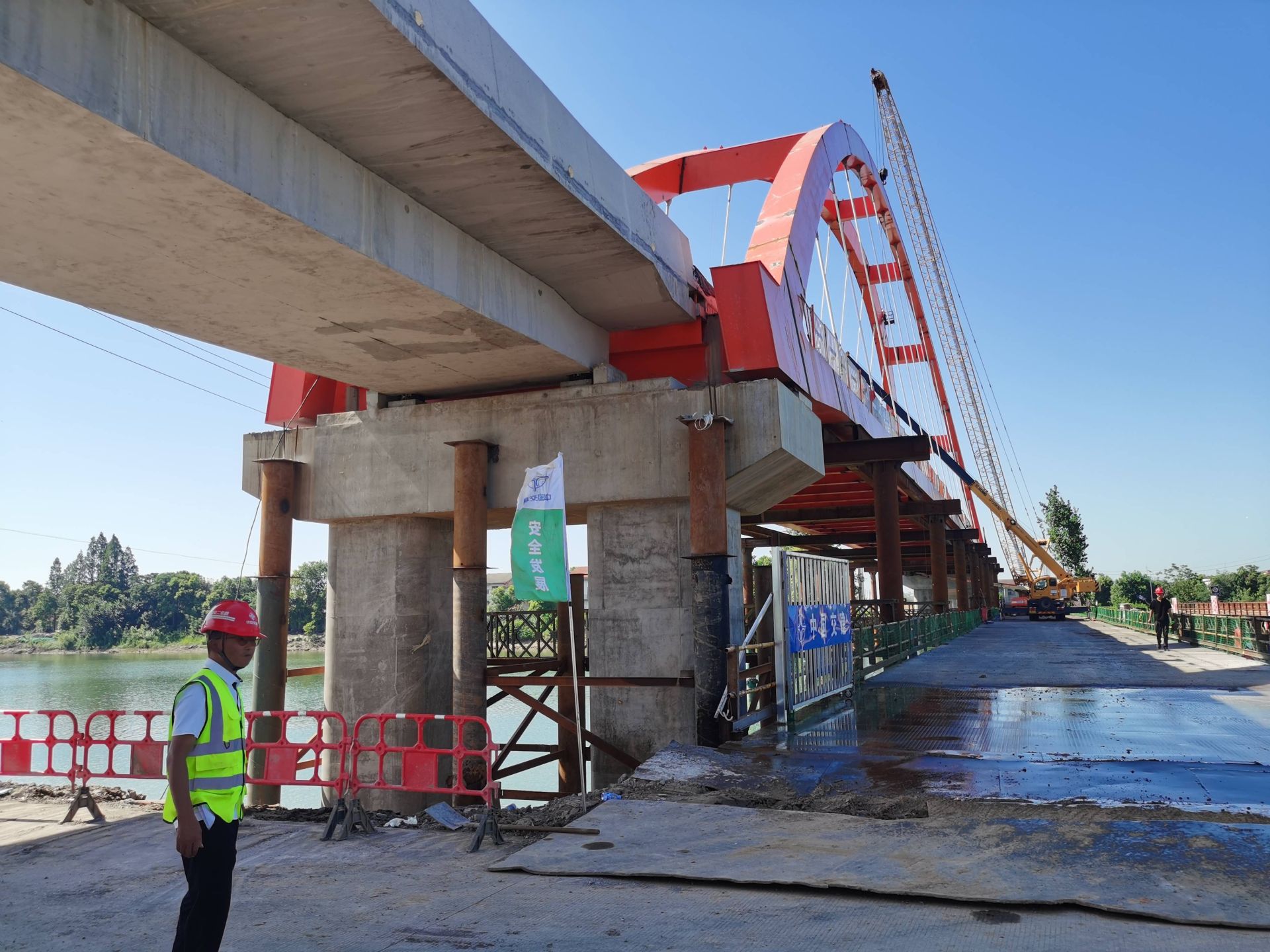 7月酷暑,洪湖市瞿家湾镇宦子口大桥施工现场,工人们顶着烈日抓紧推进护栏安装等附属工程,为月底通车做最后冲刺。届时,洪湖环湖公路将正式画圆,瞿家湾镇和监利市汴河镇两地数万群众也将结束坐渡船往来的历史。