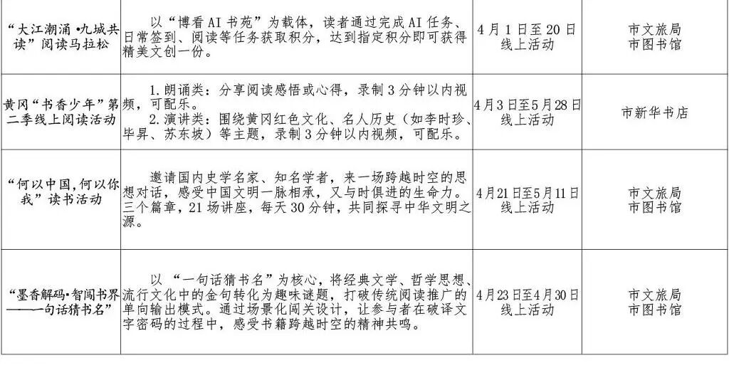 黄冈将有哪些丰富多彩的读书活动呢?小编已经给大家整理出来了一起来看看!